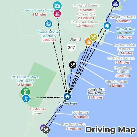 Guests of this spacious Casa Akumal Caribbean Sea Views Walk To Beach 11 Pools apartment can visit one of the highly rated landmarks, Akumal Ecological Center, placed nearly 25 minutes' walk away. Other sights are the underground Aktun Chen Cave (3.4 km) as well as Aktun Chen Natural Park (3.6 km). - ❓